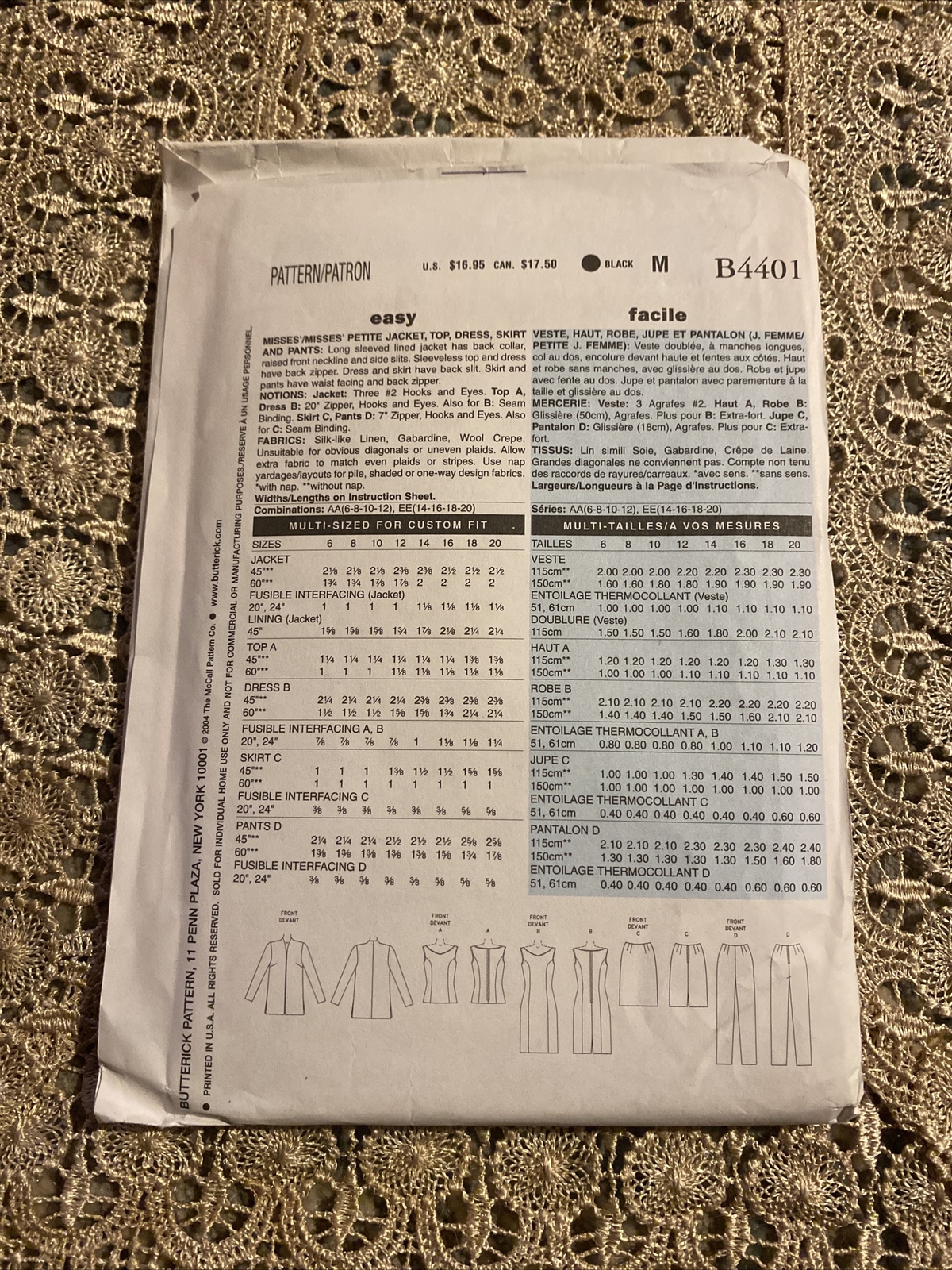 Butterick Womens Suit Pattern B4401 Size 14 16 18 20 Dress Skirt Jacket Pants Ebay
